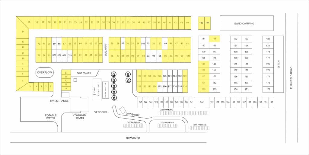 1 – Choose your site – Yellow highlight indicates a spot is unavailable. If you get an message saying this spot is not available when trying to book a spot that shows available on the map it is due to the map only being updated weekly.