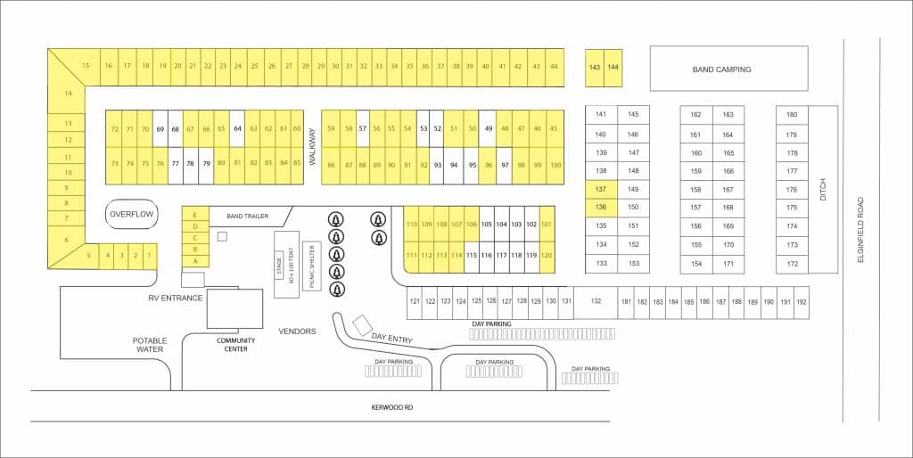 1 – Choose your site – Yellow highlight indicates a spot is unavailable. If you get an message saying this spot is not available when trying to book a spot that shows available on the map it is due to the map only being updated weekly.